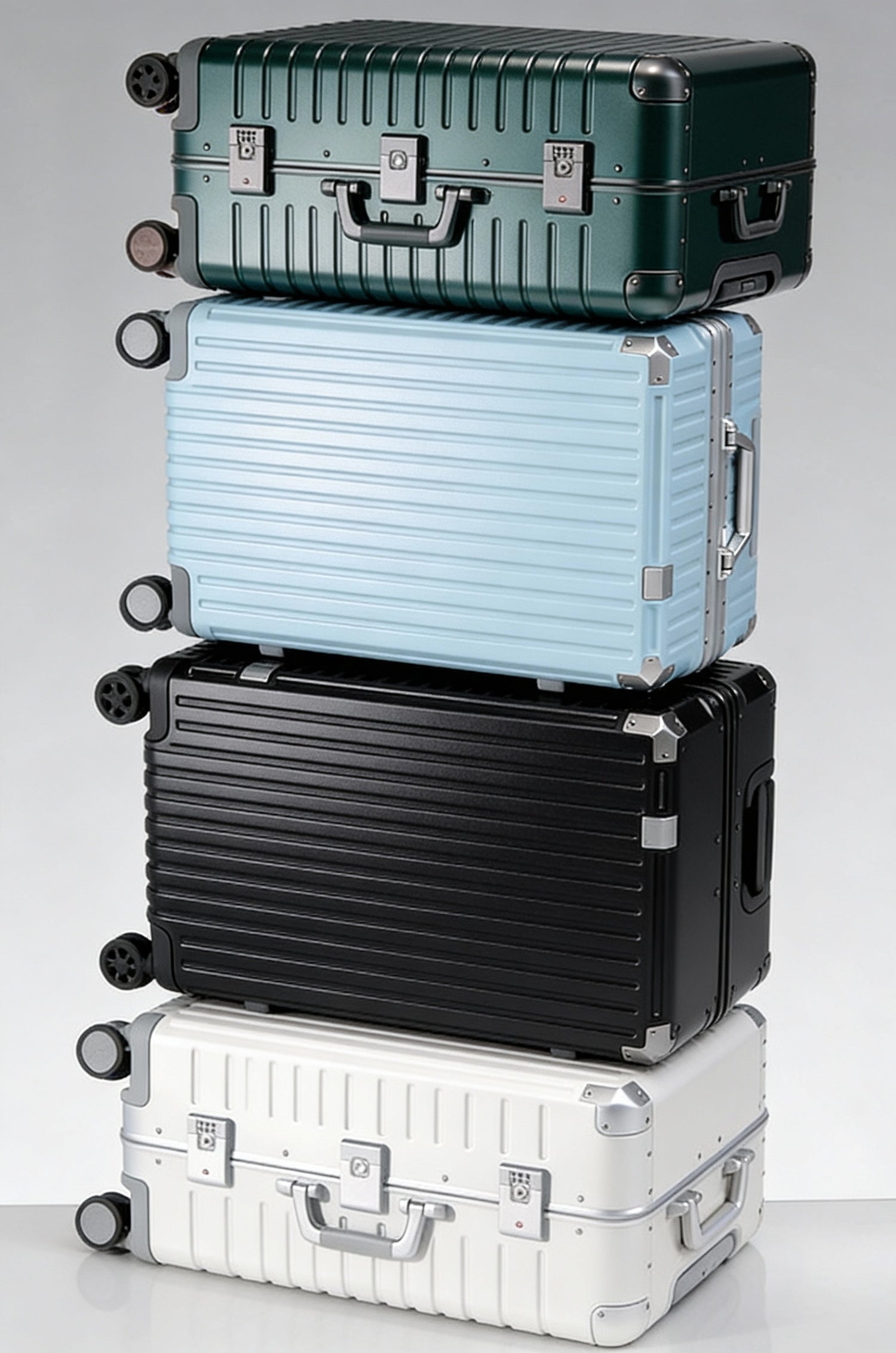 Refined aluminum-frame luggage, crafted for effortless elegance. Featuring smooth rolling wheels, an integrated USB charging port, and a secure combination lock. Available in multiple sizes for elevated travel.